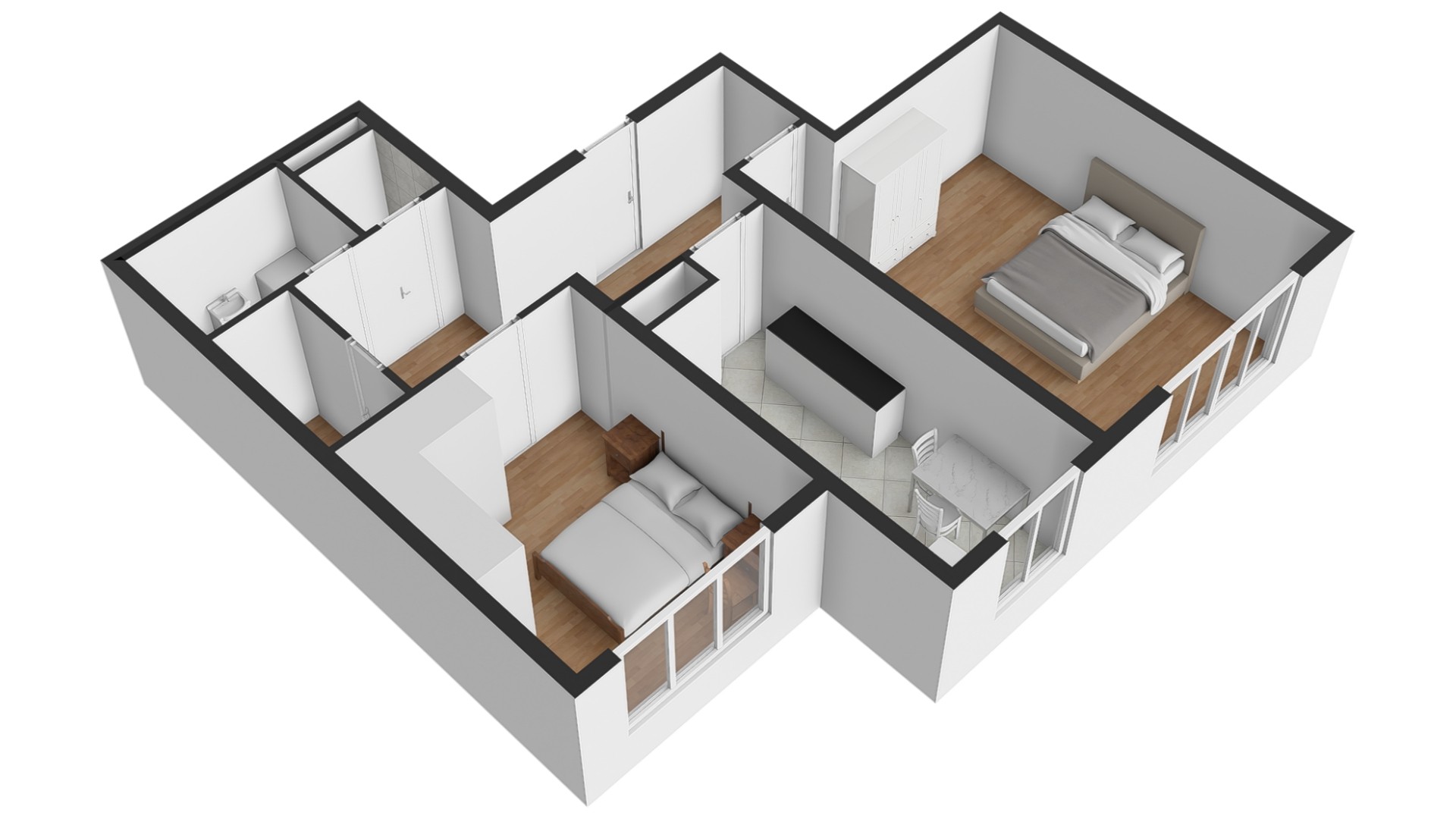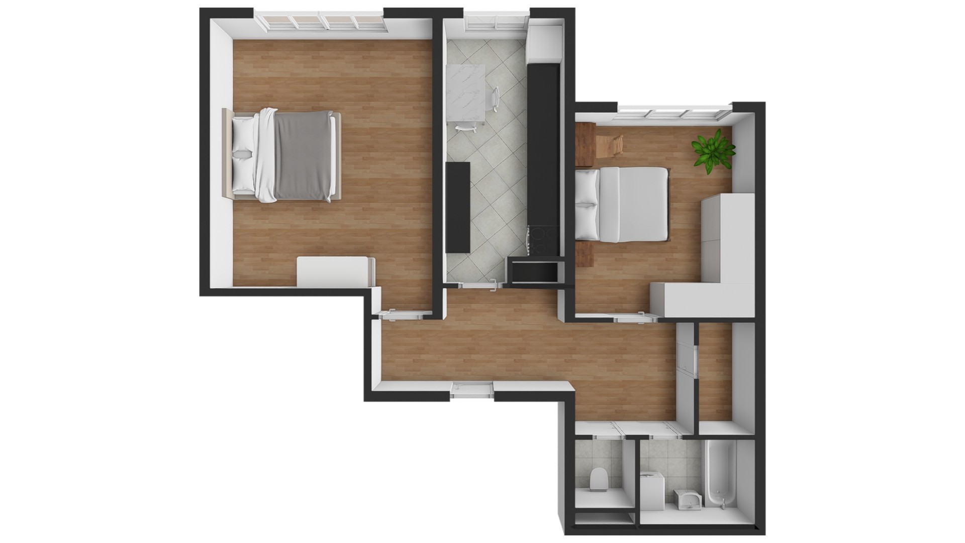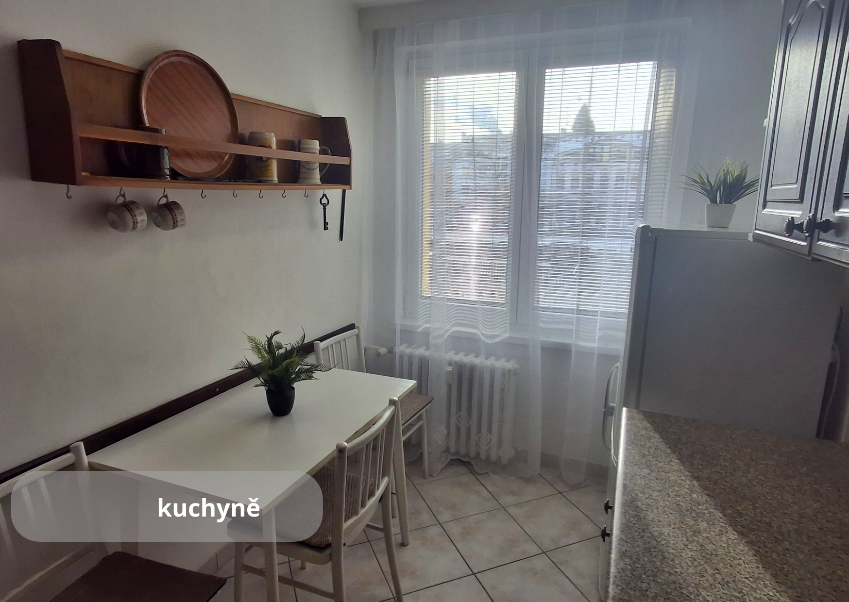 Dispozičně je řešen velmi prakticky – z předsíně s vestavěnou skříní a komorou se vstupuje do obývacího pokoje, ložnice, kuchyně s jídelním koutem, nové vyzděné koupelny a samostatného WC. Okna bytu jsou orientována na jih a poskytují klidný výhled do soukromé zahrady, která je součástí prodeje. V přízemí domu je k dispozici společná kolárna, kočárkárna a sklepní prostory.
